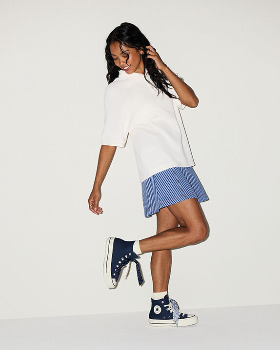Searching for new staples to add to your trainer collection? Blue offers an effortless base to combine with a variety of everyday looks. Crafted from fabrics such as the classic Converse canvas, known for being durable and easy to clean. Looking for a classic pair of blue shoes that'll go the test of time? Opt for water-resistant leather styles, ideal for when drizzly rain is forecast. Or take our iconic Chuck Taylor All Star and transform them into luxe trainers with shimmery suede, catching everyone's eyes thanks to metallic finishing. Plus, we know when you put on your kicks, comfort is key. Many of our styles feature cushioned insoles that provide plenty of support, ensuring your feet feel great all day. Keep an eye out for options designed to enhance comfort even further, giving you the ultimate go-to shoe.