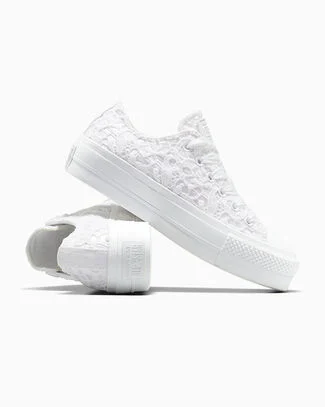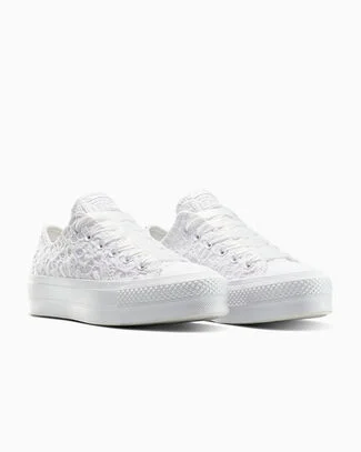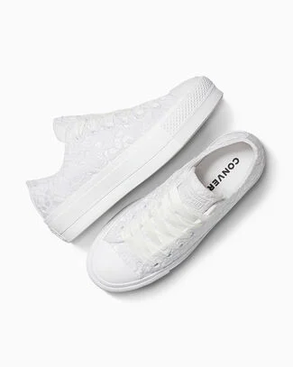 Whether you're walking down the aisle or through the city streets, these lacy wedge platforms will have all eyes on you.