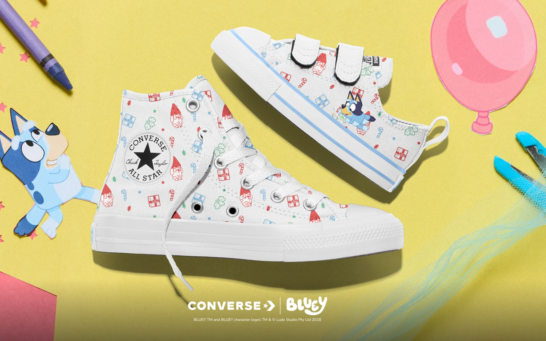 Get festive and celebrate the playful spirit of Bluey with custom Chucks for the whole fam.
