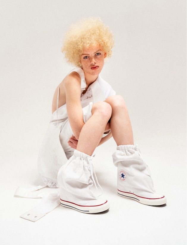 Lace up a bold new statement piece with the waxed canvas Chuck Taylor All Star XHi & XXXHi Slouch Wedge – just like Cortisa.