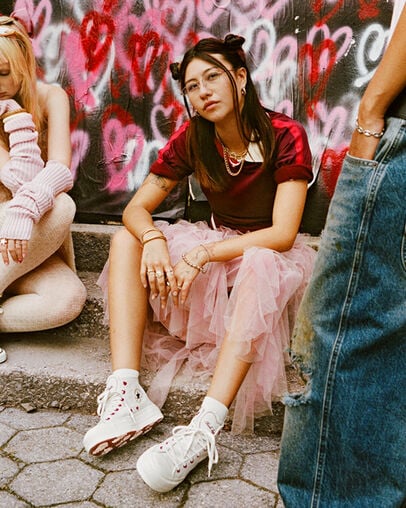 Make Valentine’s Day memorable with Converse. From playful prints and sweet pastels to bold reds and vibrant hues, find shoes made to stand out—or match. Coordinate looks with your favorite person or choose classic styles with a romantic twist. Create a one-of-a-kind gift with custom Valentine’s Day shoes, featuring personalized colors, details, and name options. Explore elevated platforms, everyday icons, and limited-edition styles like Converse x COMME des GARÇONS PLAY, plus sizes for kids. However you celebrate, step into something made to love.