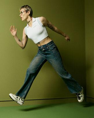 Subversive sport: Influential Chinese designer Feng Chen Wang is back with a new collection of Converse apparel, re-interpreting classic garments through her signature conceptual lens. Her deconstructive approach transforms modern staples into distinctive, one-of-a kind pieces with nods to Converse sneakers. These limited-edition 2-in-1 cargo trousers feature detachable legs with 2-way zips, metal eyelets, large contrast patch pockets on the side and cobranding printed down each leg.